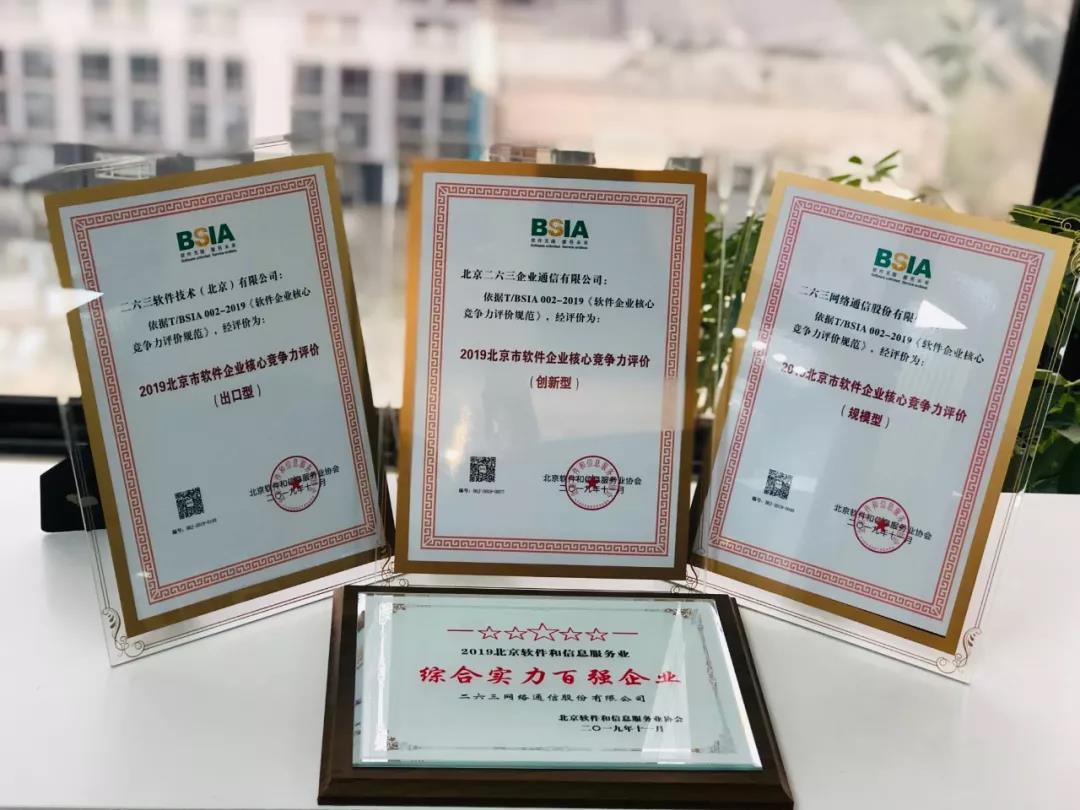四喜臨門!二六三獲北京軟協(xié)綜合實力百強企業(yè)及企業(yè)核心競爭力評價